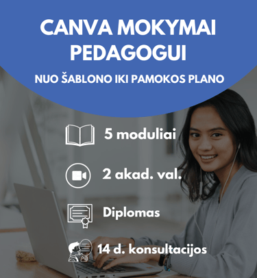 Canva mokymai pedagogui: nuo šablono iki pamokos plano